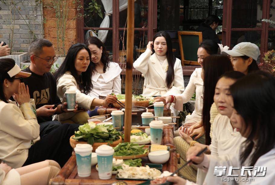 “一边赏油菜花,一边吃火锅,这种体验太特别了!”在湘峰村,游客李女士一边涮着鲜嫩的蔬菜,一边兴奋地拍照发朋友圈。远处是无垠的金色花海,桌边是氤氲着茶香的火锅,这种“视觉+味觉”的双重享受,让荷畔茶馆迅速成为春日打卡的热门目的地。