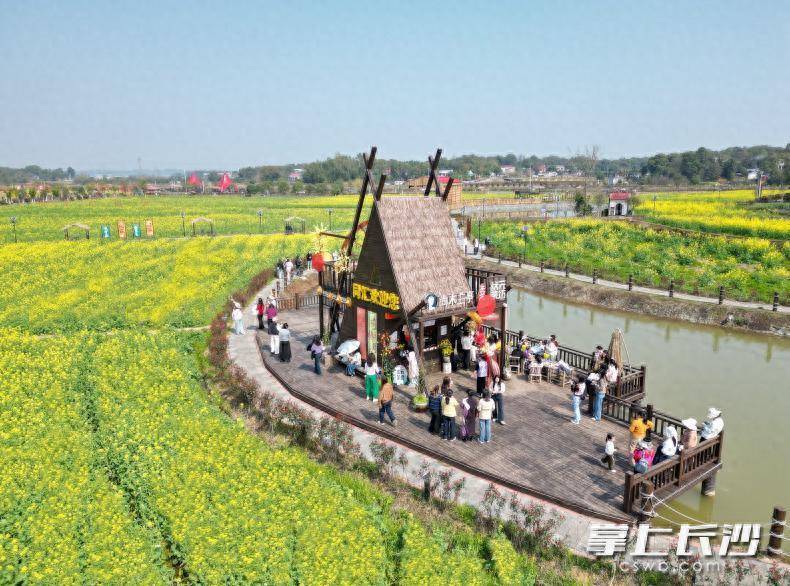 春光烂漫,油菜花开。走进长沙县长龙街道湘峰村,金灿灿的油菜花海铺满田野。花田间,游客们或拍照打卡,或围坐品尝热气腾腾的药膳火锅、茶膳火锅,欢声笑语随风飘散……这个春天,长龙街道以花为媒、以食为引,打造“赏花+”多元消费新场景,让庭院经济“火”出圈,为一季度“开门红”写下生动注脚。
